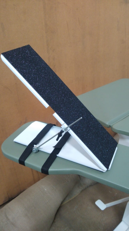 Plano Inclinado para Apoio de Braço - ANB-355 foi desenvolvido para substituir o uso dos calços quando o paciente apresenta muita flexão do cotovelo.