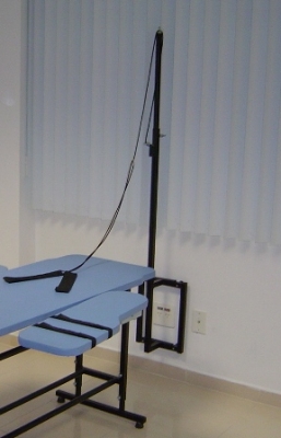 É item acompanhante desta Mesa assim como o Adaptador para Postura Bailarina ASB-390 e, como acessório, é possivel adaptar uma trena para possibilitar uma medição de altura do Paciente. Não é uma medição precisa mas pode auxiliar o Terapeuta em uma comparação da evolução do tratamento.