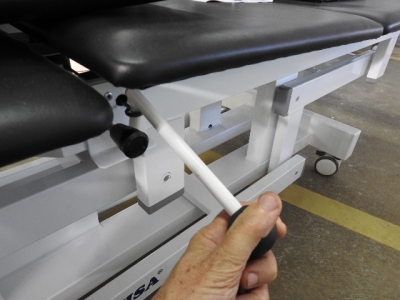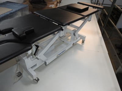 Conjunto mecânico, sem partes elétricas, acionado por um mecanismo hidráulico através de manivelas e pedais, para posicionar o paciente em procedimentos exigidos para a CORREÇÃO POSTURAL.